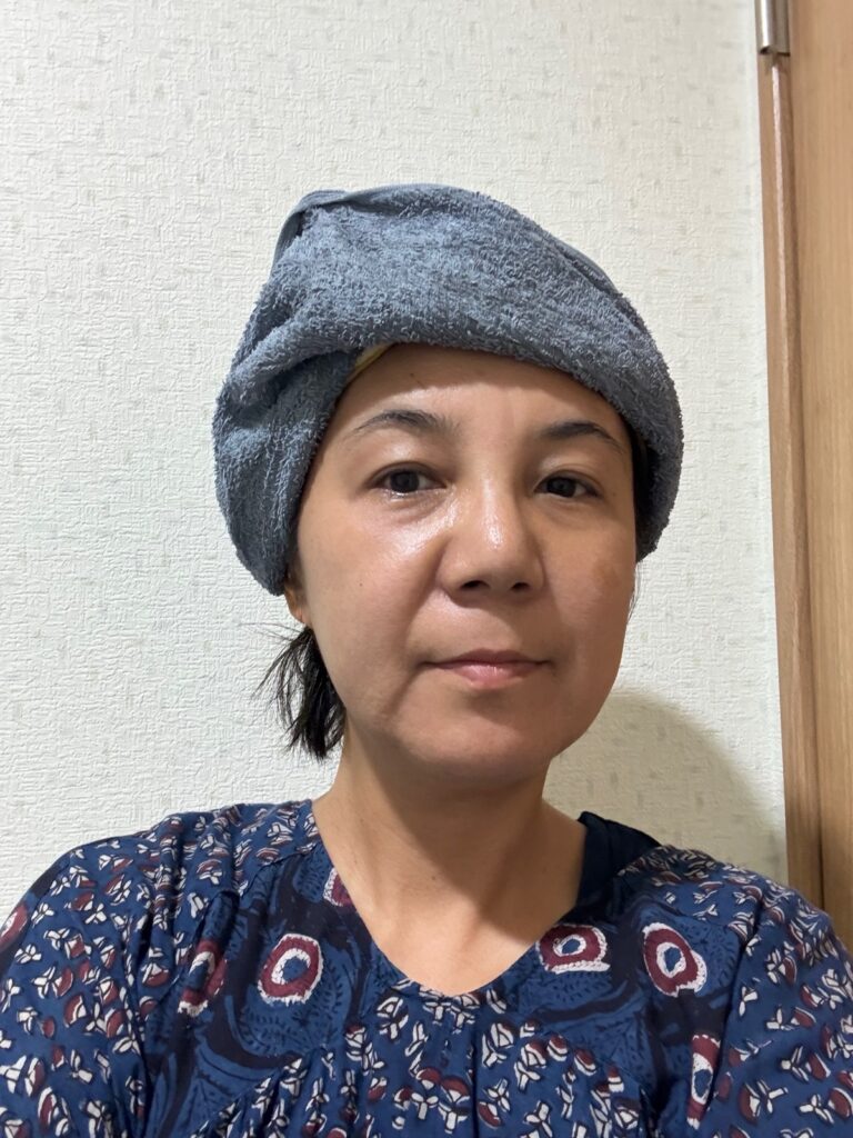 タオルをターバン風に(笑)。