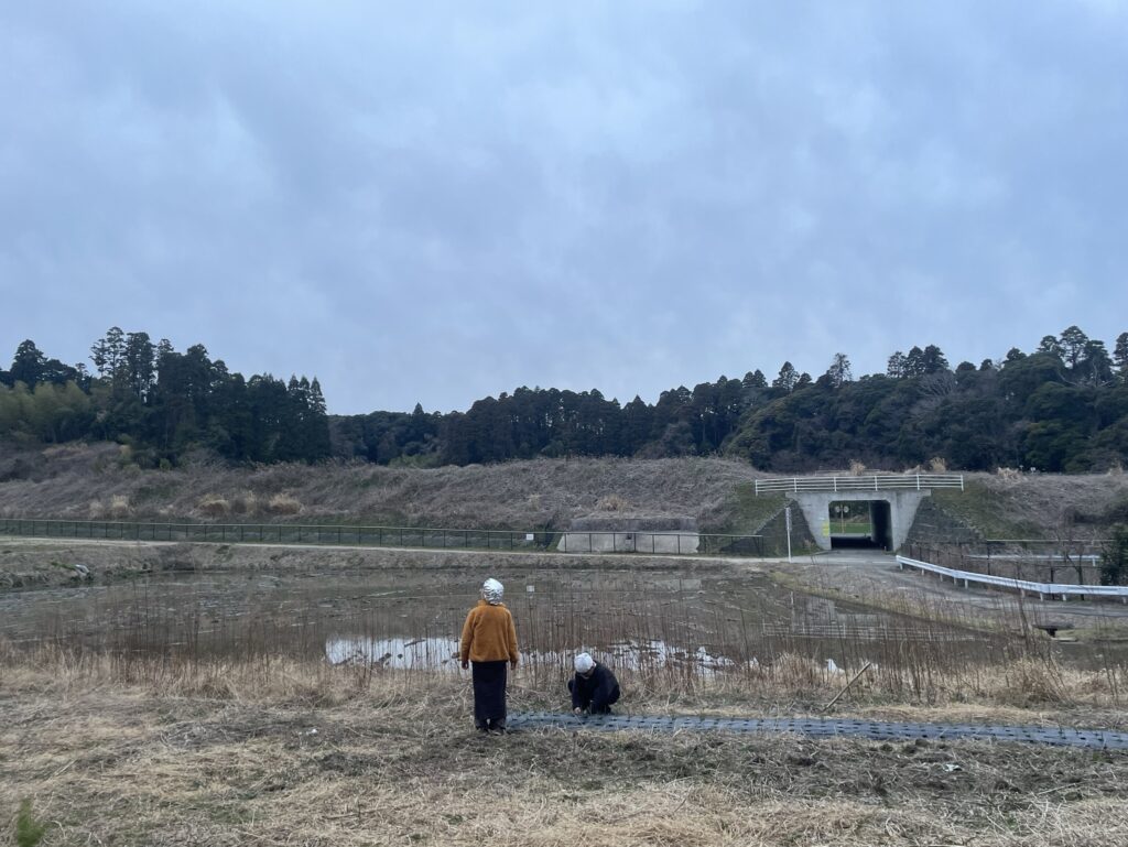 畑で育てている玉ねぎの雑草を抜いたり、つくしやスギナを見つけて摘んだり。